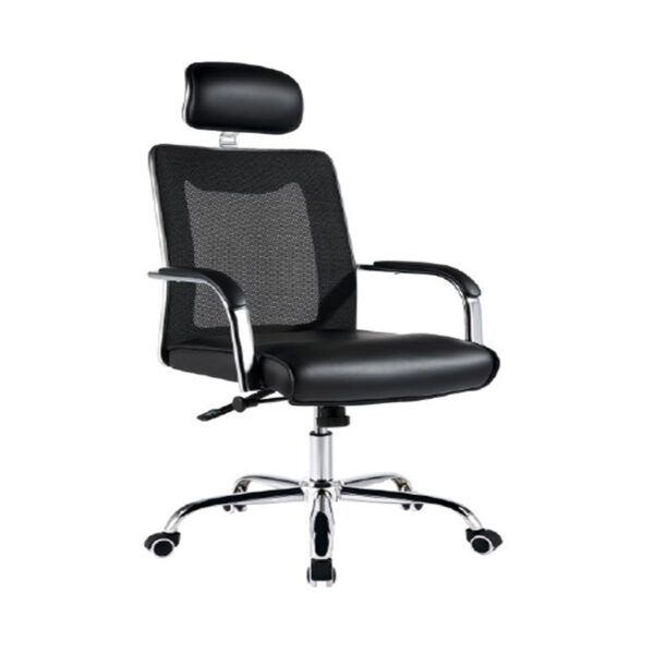 Executive Highback Chair with armrest, adjustable gaslift with tilting mechanism, soft-thread leather upholstery, and chrome finish starbase with castor wheels