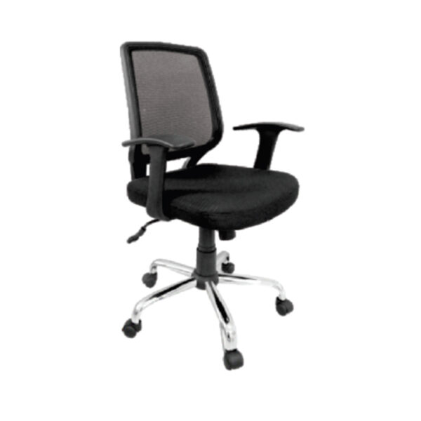 Midback Visitors Chair – Mesh backrest, Padded Fabric Seat, PVC Armrests, with Chrome Plated Steel Bruer Legs
