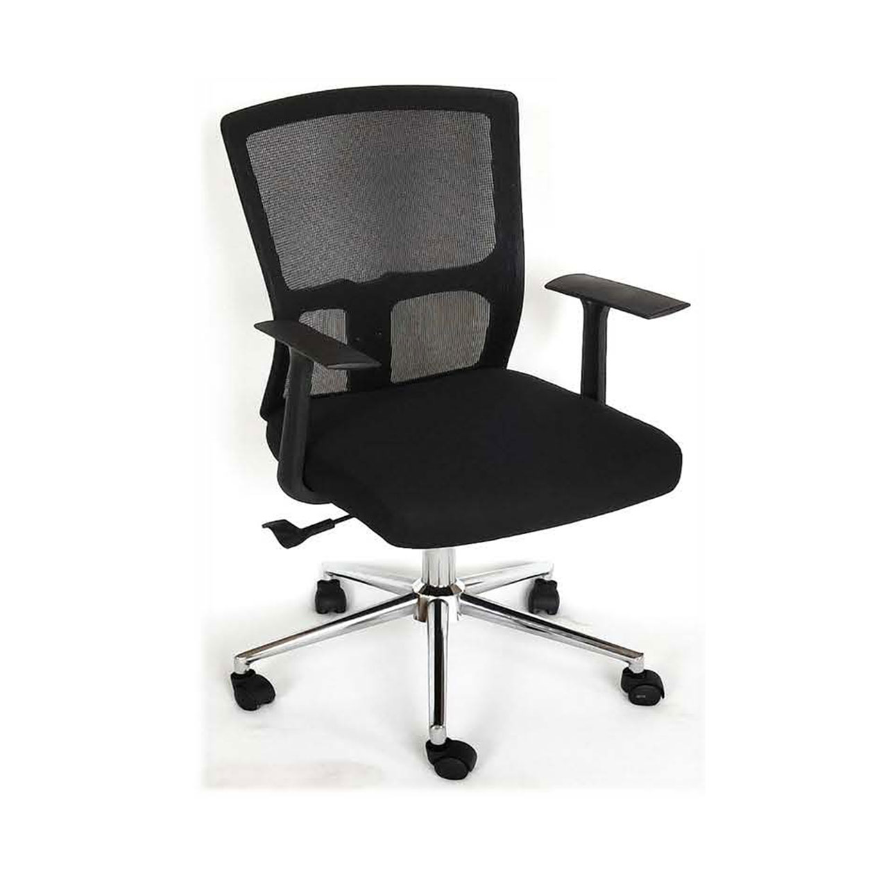 Midback Mesh-type Office Chair with Padded Fabric Seat, Fixed Armrests, Pneumatic Gaslift, Chrome Plated Steel Legs, and Nylon Caster Wheels